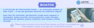 Boatos – A circulação de informações falsas – os chamados boatos ou fake news – é um dos grandes desafios do ambiente digital.
